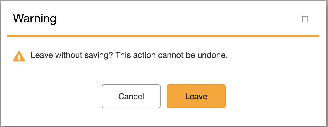 | Actions: One primary button or the combination of the primary and secondary buttons can be used for the dialog action controls. The key 'Enter' is for accessing the primary button and the key 'Esc' is for closing the dialog. |